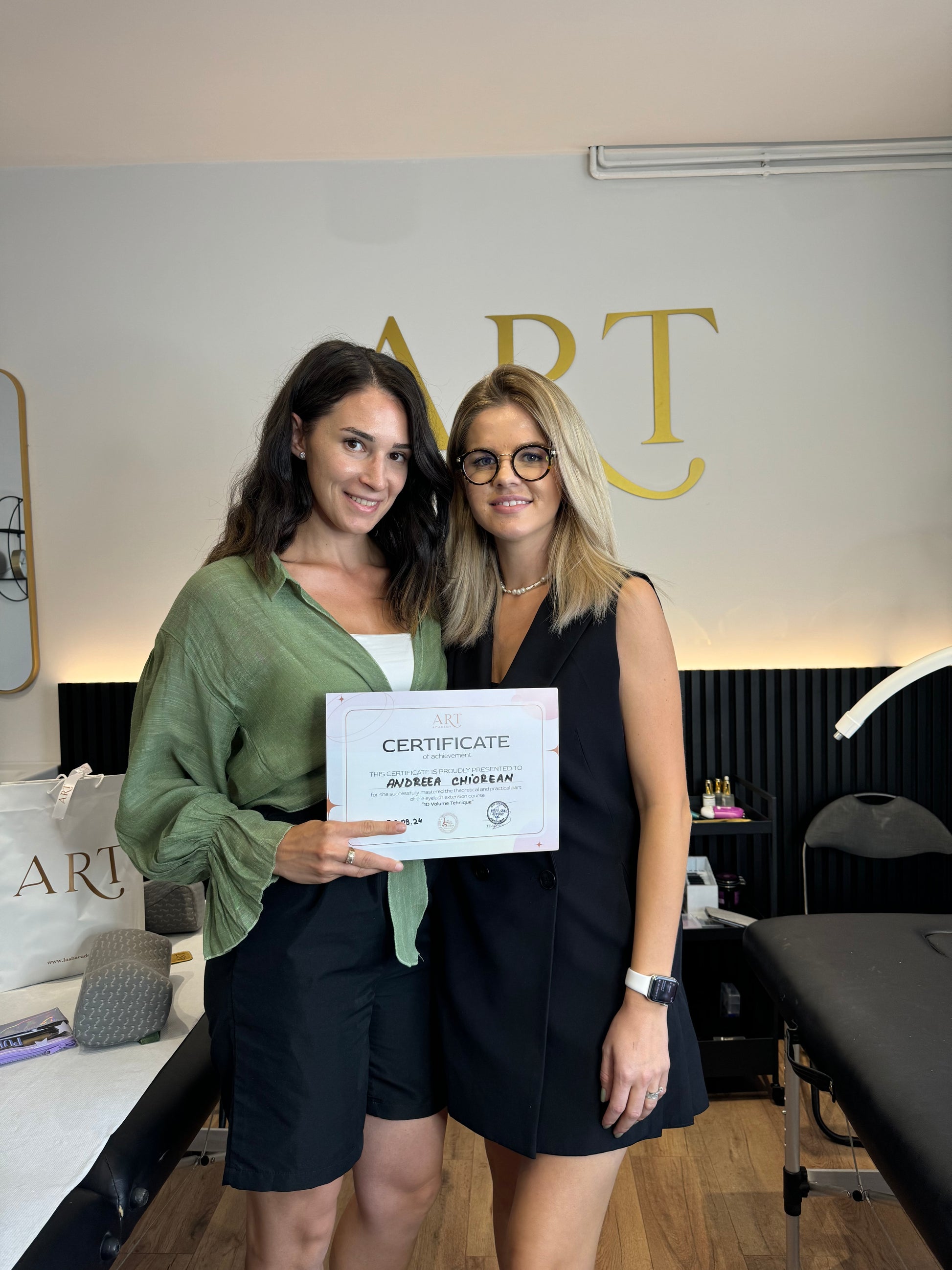 • Trainer certificat: Anda Păun, cu o experiență vastă în extensiile de gene, te va ghida pas cu pas, asigurându-se că înțelegi și stăpânești fiecare tehnică.